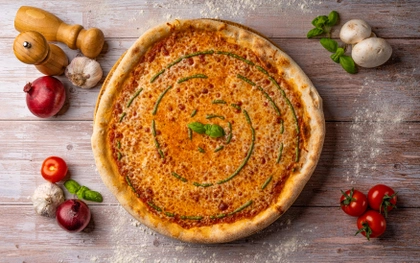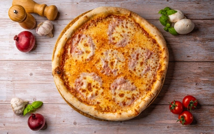 Tomat, mozzarella, anglická slanina, listový špenát, česnek, cibule