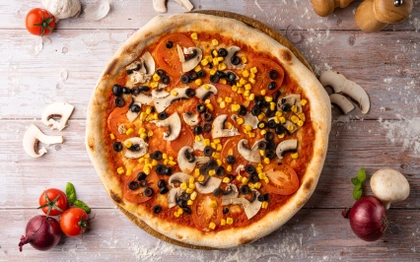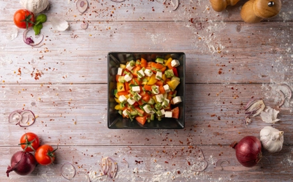 Tomat, olivy, špenát, kukuřice, paprika, cibule