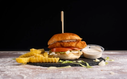 CHICKEN BURGER, HRANOLKY, TATARKA