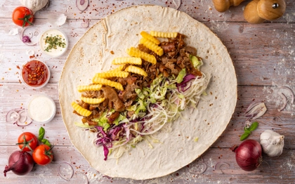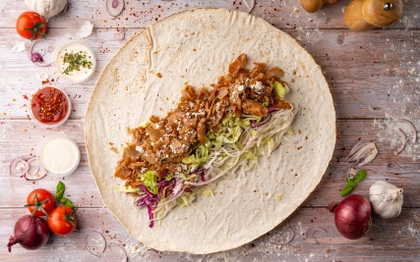 Fritované těsto plněné sýrem se salátem a omáčkou