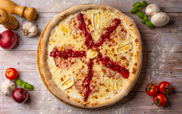 Smetana, mozzarella, anglická slanina, vepřová panenka, cibule, česnek