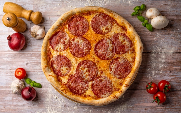 Tomat, mozzarella, paprikový salám, cibule, papričky jalapeño